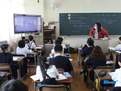 4年生が、大きな数について学習しました。数直線を活用して考えていました。しっかり考え方を発表している人もいました。