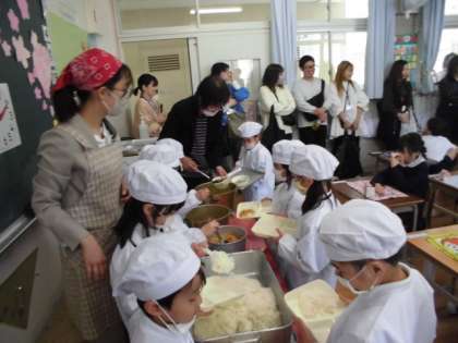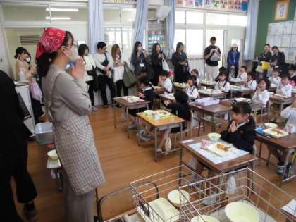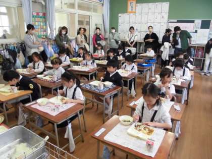みんなで協力して給食の配膳をして、おいしく給食をいただきました。