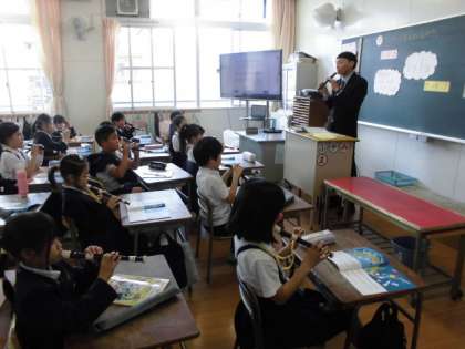 3年生は、音楽「初めてのリコーダー」をしました。まずは、強く吹きすぎないように、また弱すぎないように意識しながら吹きました。