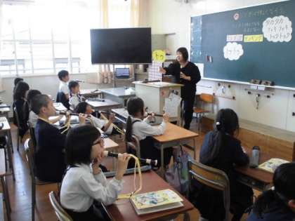 次に、みんなでリズムを合わせて吹きました。とても楽しくリコーダーの学習を行うことができました。