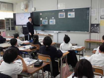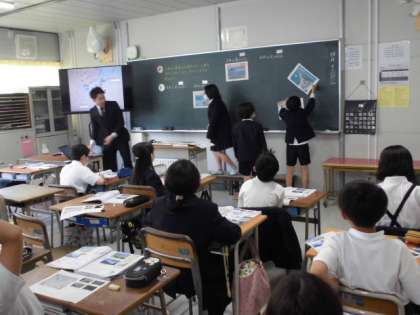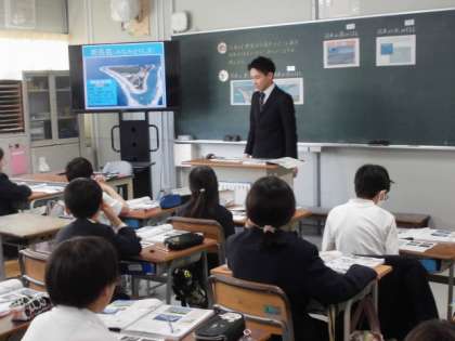 日本の端の島の写真を見ながら調べました。そのあとは、沖ノ鳥島についてみんなで意見を出し合い、意見をまとめて発表しました。