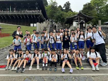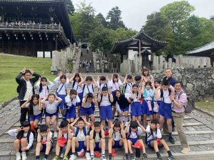 二月堂の前で学級写真を撮りました。