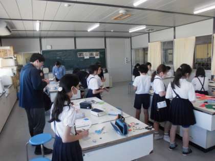 家庭科クラブは、フェルトを使ったマグネット作りをしました。科学クラブは、プラバンに絵を描いてキーフォルダを作りました。