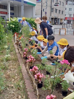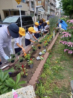 今日は地域の方のご厚意で三軒家公園に花を植えに行きました。