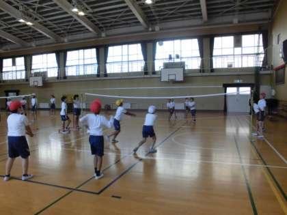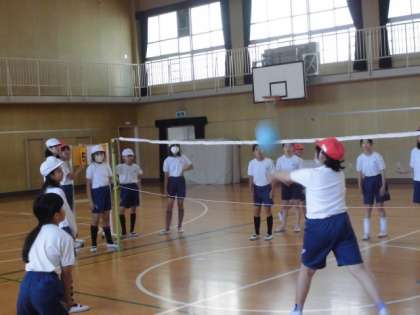 5年生が体育でソフトバレーボールをしました。ボールが思い通りに返せず、なかなか難しかったですが、みんなで力を合わせて頑張っていました。