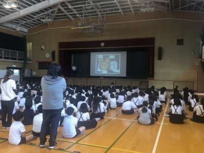 今日の児童朝会では、校長先生から「食品ロス」についてお話がありました。