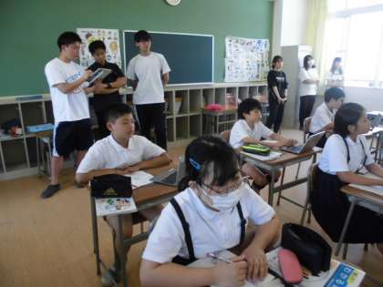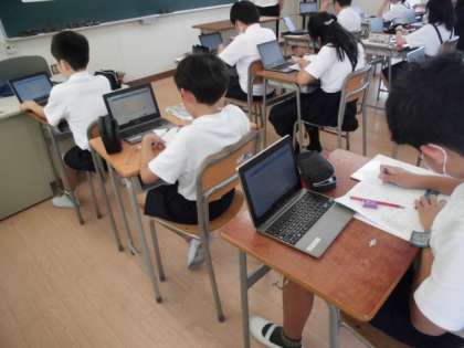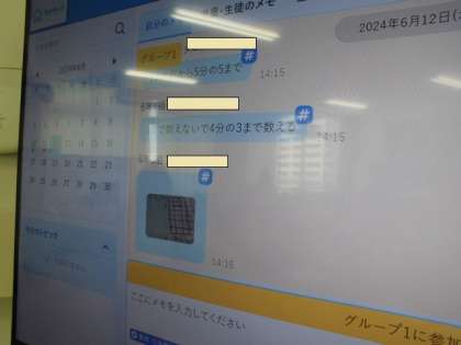 教員もスカイメニューの「気づきメモ」を使った意見交流をどのように行ったらいいのか研修をしながら研究を進めています。授業力の向上を目指して自らタブレットを活用して、熱心に意見を交流する教員もいます。