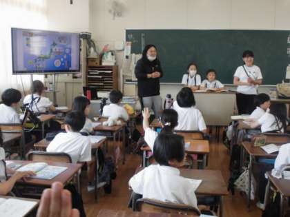 4年生が英語の学習で「Let’s play cards」に取り組みました。天気の言い方や遊びに誘う表現などをしっかり学習しました。