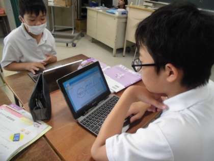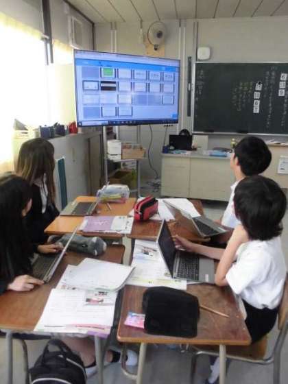 6年生が、土曜授業で道徳「カスミと携帯電話」の学習をしました。タブレットを使って発表ノートの思考ツールを活用し、携帯電話やスマホのよくないことことについて考えました。