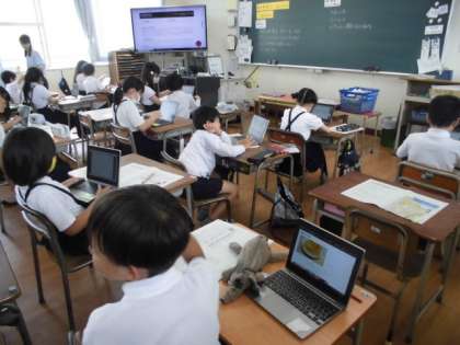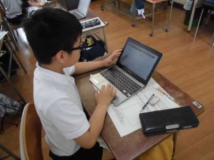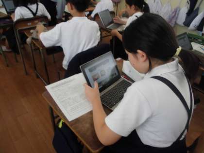 タブレットで、「大阪に来る外国の方に和食を紹介しよう」というテーマで調べ学習をしています。