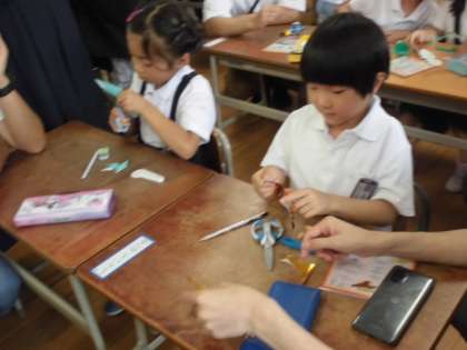 1年生が、図工「ちょきちょきかざり」の学習をしました。