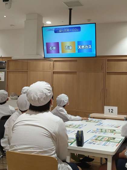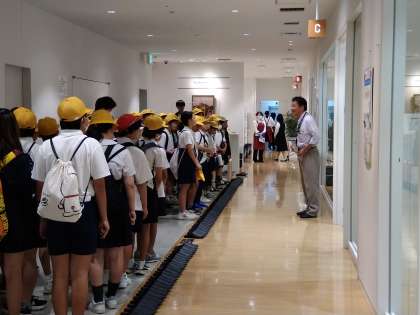 6年生が社会見学でハグミュージアムに来ました。はじめにエネルギーの勉強をしました。みんな集中して説明を聞いていました。