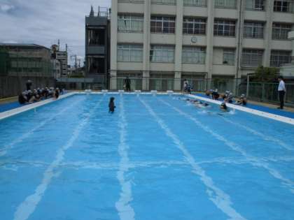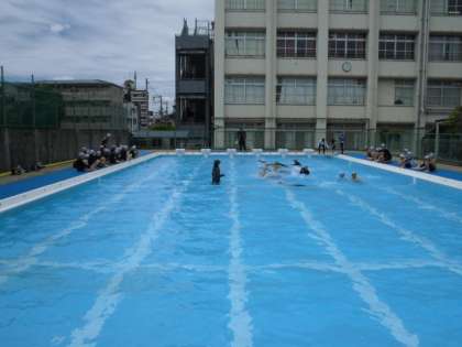 今日は、朝から雨が降っていましたが、2時間目の途中からやみ、水泳の授業を行うことができました。4年生は、クロールがどれだけ泳げるかチャレンジしました。