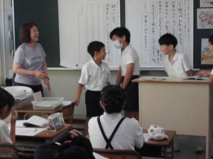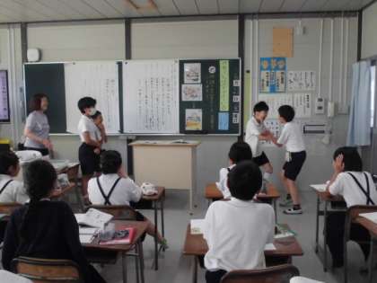 5年生が国語の習熟度別少人数授業で「世界一やかましい音」の学習をしました。読み取った後に作品のおもしろさを役割演技で紹介しあいました。