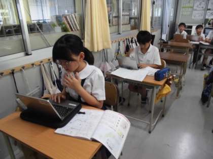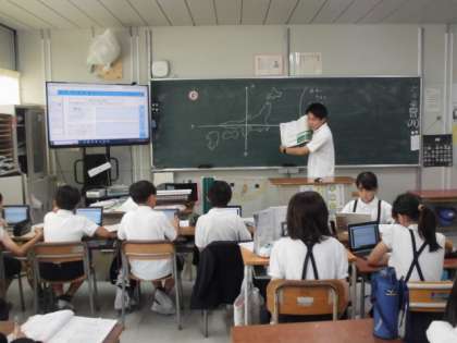 5年生が社会で、「食料の生産場所をみてどんなとくちょうがあるか」という課題で学習をしました。先生からスカイメニュークラウドの発表ノートで課題が送信され、それぞれに課題に取り組みました。