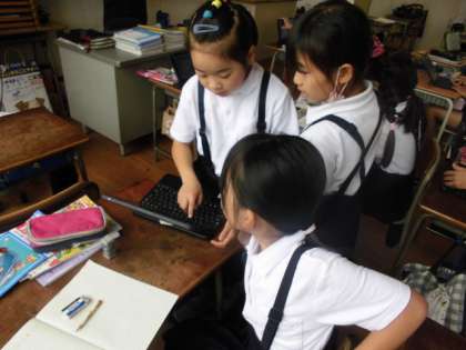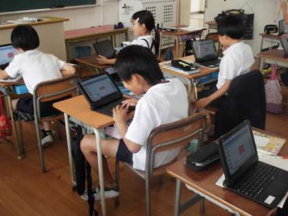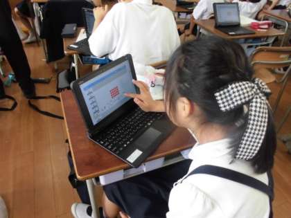 3年生が算数でわり算の学習をしました。スカイメニューの発表ノートを使って課題に取り組み交流しあいました。