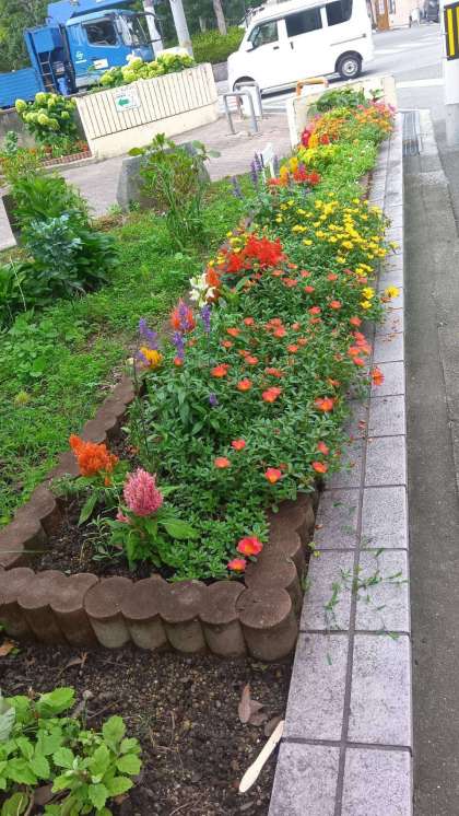 5月30日に三軒家東小学校のいきいき教室の子どもたちが、地域のみなさんと一緒に植えた花壇の花です。とても元気に育ってきました。
