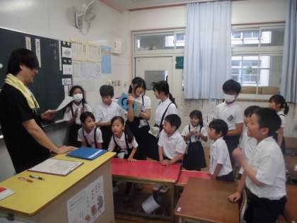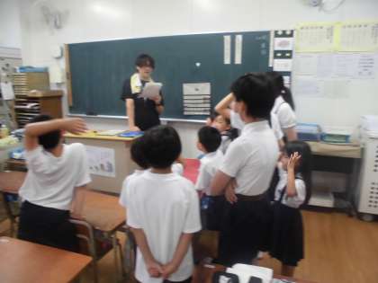 「なぞなぞクイズ」は、先生の出す問題をみんなで考えました。しっかり協力して考えていました。