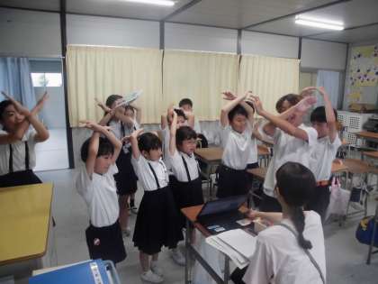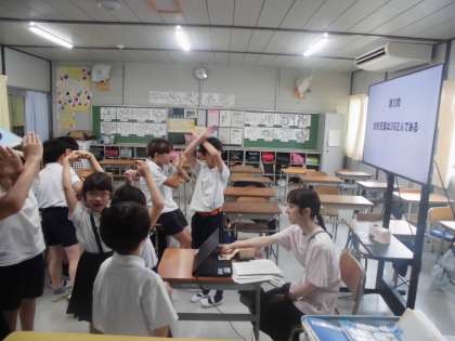 「〇×クイズ」も正解者が何人いるかみんなでいっせいに〇か×を出すゲームです。みんなで楽しく行うことができました。