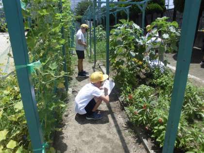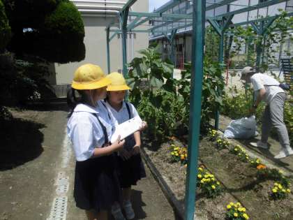 3年生が理科の学習でマリーゴールドとホウセンカの観察をしました。昨日の大雨でホウセンカは倒れてしまいました。それでもしっかりと観察しました。また添え木をして観察を続けていきます。