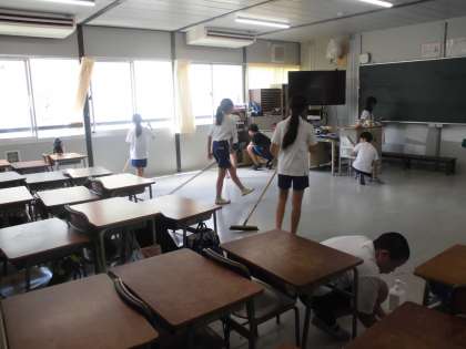 6年生は講堂の体育倉庫も掃除しました。もうすぐお別れのプレハブ校舎も感謝を込めてピカピカにしました。