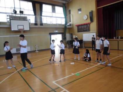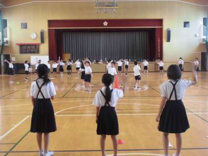 5年生が、キャンプファイヤーの練習をしました。キャンプだホイやアブラハムの子などを踊ったり、ばくだんゲームをしたりして林間に向けて準備をしました。林間に行く前から楽しく盛り上がっていました。