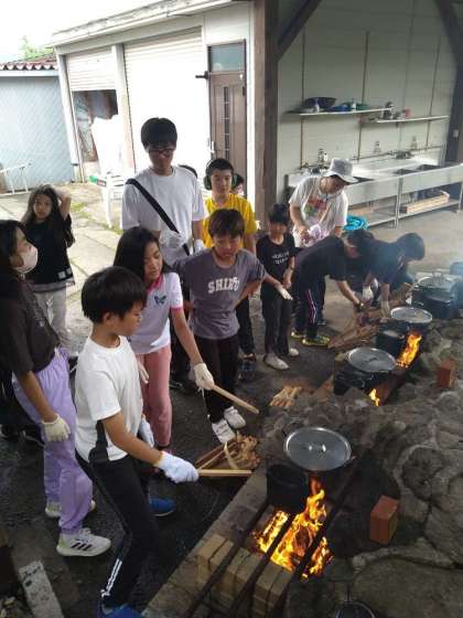 カレーの担当と飯ごうの担当に分かれてがんばっています。
