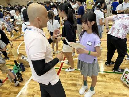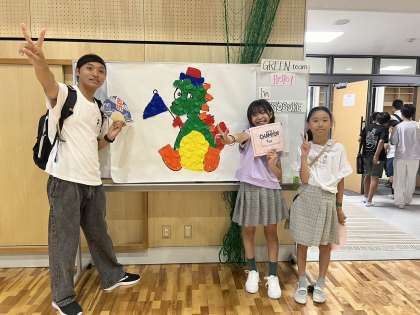 今日は中之島小中一貫校にて、イングリッシュ・デイがありました。5年生が参加し、ゲームをしたり、歌を歌って踊ったり、C-NETの先生と交流したり、他の小学校の子と交流したりしました。