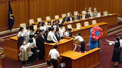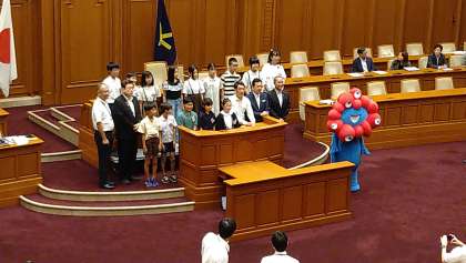 大阪市役所の議場で「おおさか子ども市会」が開かれました。81名の子どもたちが参加しました。三軒家東小学校からも2名の子ども議員が参加しました。