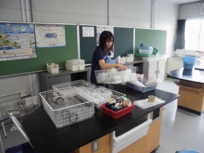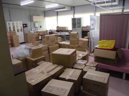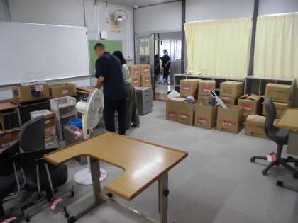まずはプレハブ校舎から荷物を移動します。すごい数の段ボール箱に荷物が詰めてあります。