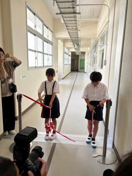 講堂での式の後は、テープカットを行いました。