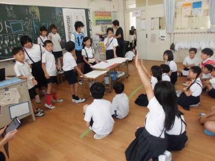 前半のお店めぐりがスタートしました。みんなで楽しく協力してお店を回ったり、お店の役割分担をしていました。