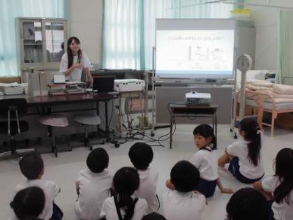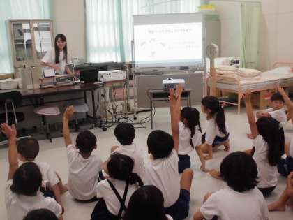 2年生が発育測定をしました。測定の前に養護教諭から子どもたちにけがについてのお話をしました。けがの防止についてしっかりと考えることができました。