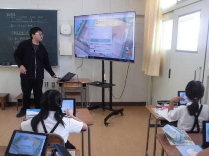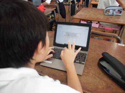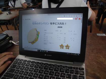 タブレットに「らっこたん」というタイピングの練習や情報モラルのクイズ等ができるアプリが入りました。さっそく3年生と4年生が使ってみました。
