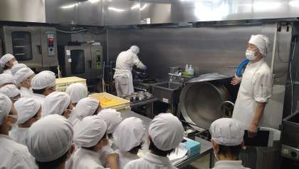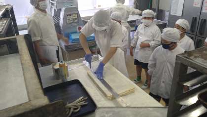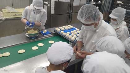 3年生がパン工場に社会見学に行きました。まずは卵焼きを作る様子や、パンの生地の中に餡を入れる作業などを見学しました。作っている真横まで行ってしっかり見学させてもらいました。