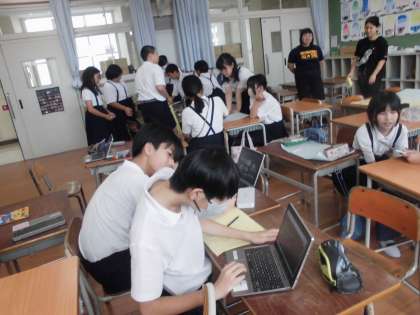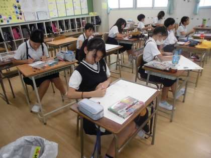 計画委員会は、あいさつ運動のポスターを作っていました。それぞれに工夫されたポスターができていました。新聞委員会は、タブレットを活用しながら一人一人が自分の担当の記事を書いていました。