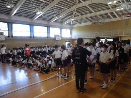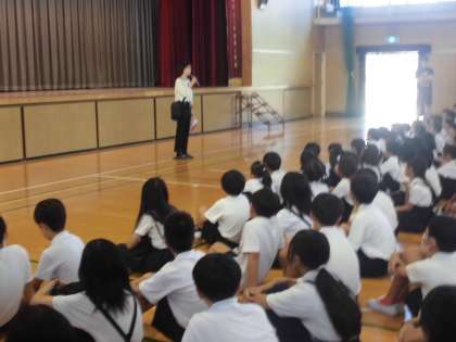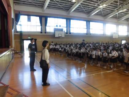 講堂では、警察の方から自分の身を守るために大切な話を聞きました。集中してしっかりと話を聞くことができました。