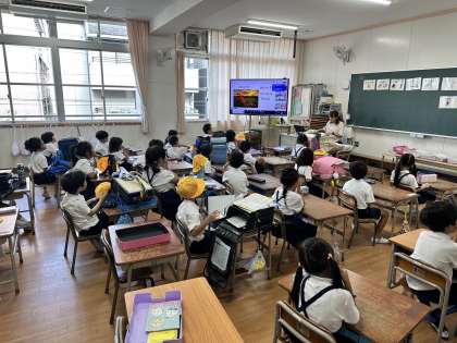 Teamsで児童朝会を行いました。お彼岸の時期にだけ咲くヒガンバナについてのお話をしました。しかし、今年は異常気象で暑すぎて、まだあまり咲いていないとのことでした。また、ヒガンバナに葉っぱはあるのかというクイズを出しました。みんなしっかり考えていました。