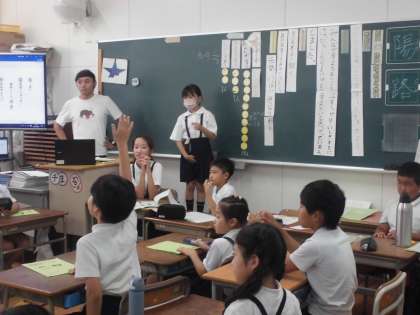 3年生が学級会で「学級の合言葉をの使い方を決めよう」という議題で話合い活動をしました。より良い学級になるようみんなしっかりと発言していました。