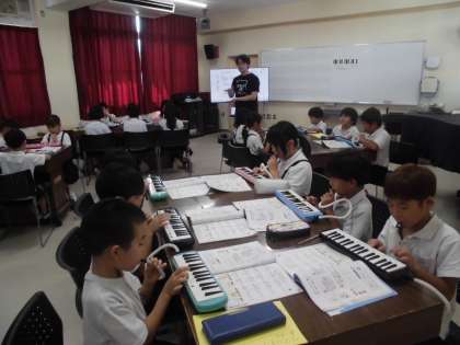 9月24日 2年生 音楽「リズムを重ねて楽しもう」