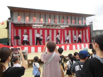 三軒家公園で三東フェスティバルが行われました。三軒家東小学校からはダンスクラブがダンスを披露しました。トレーラーのステージでしっかりと踊ってくれました。スペシャルゲストでミャクミャクも来てくれました。そのあとは、踊りたい人がステージに上がって踊りましたが、とても盛り上がりました。お店もたくさん出ていてたくさんの方が来て大盛況でした。