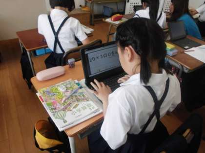 3年生が算数で「かけ算の筆算」の公開授業を行いました。20×3の計算の仕方について考えました。今まで習ったことをもとにして考えました。