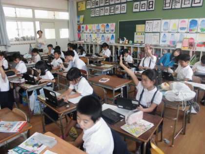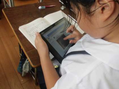 タブレットでスカイメニューの「発表ノート」を使って交流をしました。いろいろな考え方が発表されました。