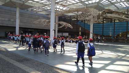 自然史博物館に着きました。みんな大きなマッコウクジラの骨に驚いています。