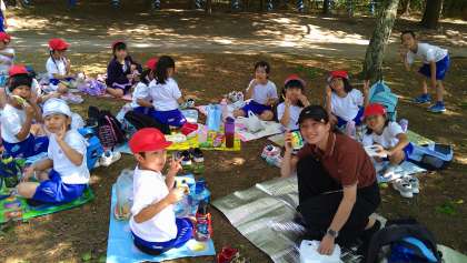 お弁当の後は、楽しくおやつを食べています。