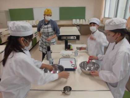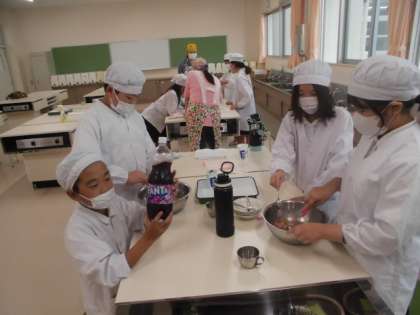 家庭科クラブは、ゼリーづくりに取り組みました。ジュースを入れてゼラチンと混ぜておいしいゼリーを作りました。