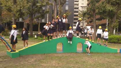 少し時間があるので、食べた後は遊具で遊んでいます。