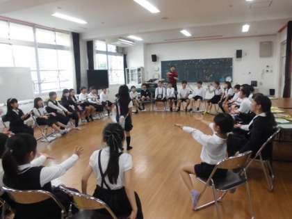続いて、友だちバスケットをしました。好きなものなどが同じ友だちに気づくことができ、とても楽しんでいました。