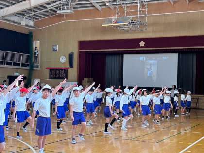 3,4年生が、運動会で踊るダンスを作ってくれたブラジルにいるダンスの先生にオンラインで指導してもらいました。