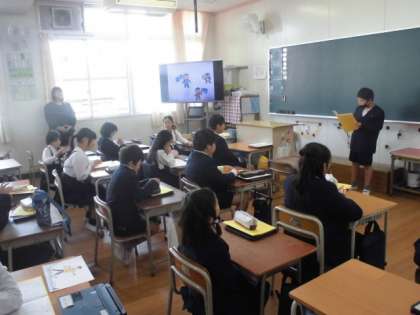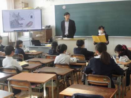 3年生は、国語「話したいな、すてきな時間」とローマ字の授業をしました。習熟度別少人数授業で行いました。描いた絵をモニターに移して発表しました。